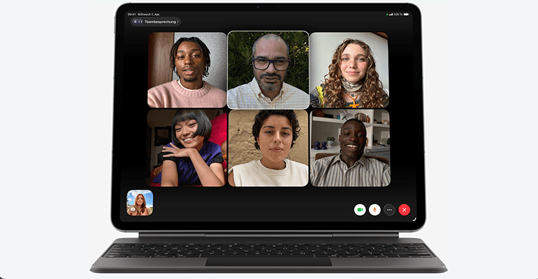 Das iPad Air 11 besitzt eine 12 MP Weitwinkelkamera auf der Rückseite. Mit ihr lassen sich Videos in 4K mit bis zu 60 fps aufnehmen. Zeitlupenaufnahmen in 1080p mit bis zu 240 fps sowie Zeitraffer mit Bildstabilisierung werden ebenfalls unterstützt. Die Frontkamera bietet 12 MP und nutzt Center Stage, um Personen während Videoanrufen automatisch im Bild zu halten. Das ist besonders praktisch für Videokonferenzen, Onlineunterricht oder kreative Inhalte.